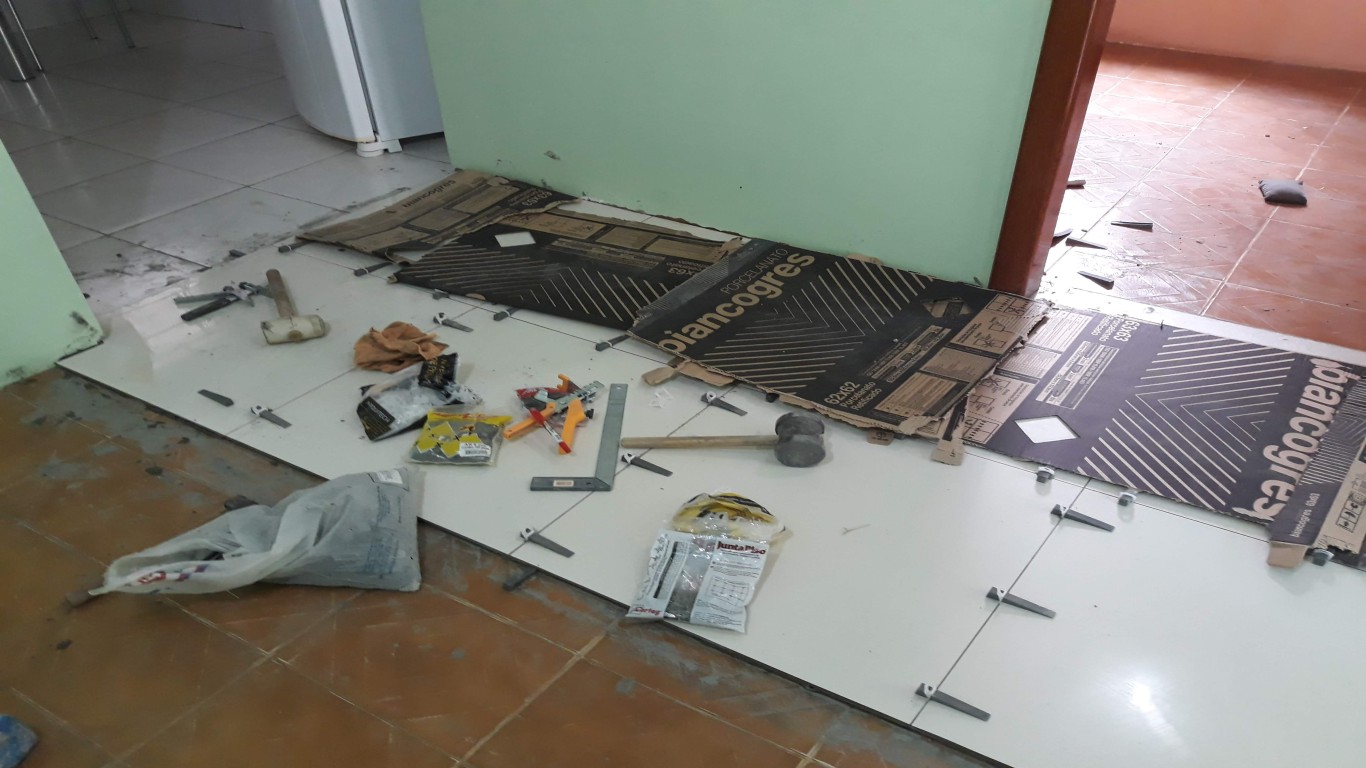 NESTE PROJETO O MAIOR OBSTACULO FOI O DESNIVEL NO PISO ANTIGO.