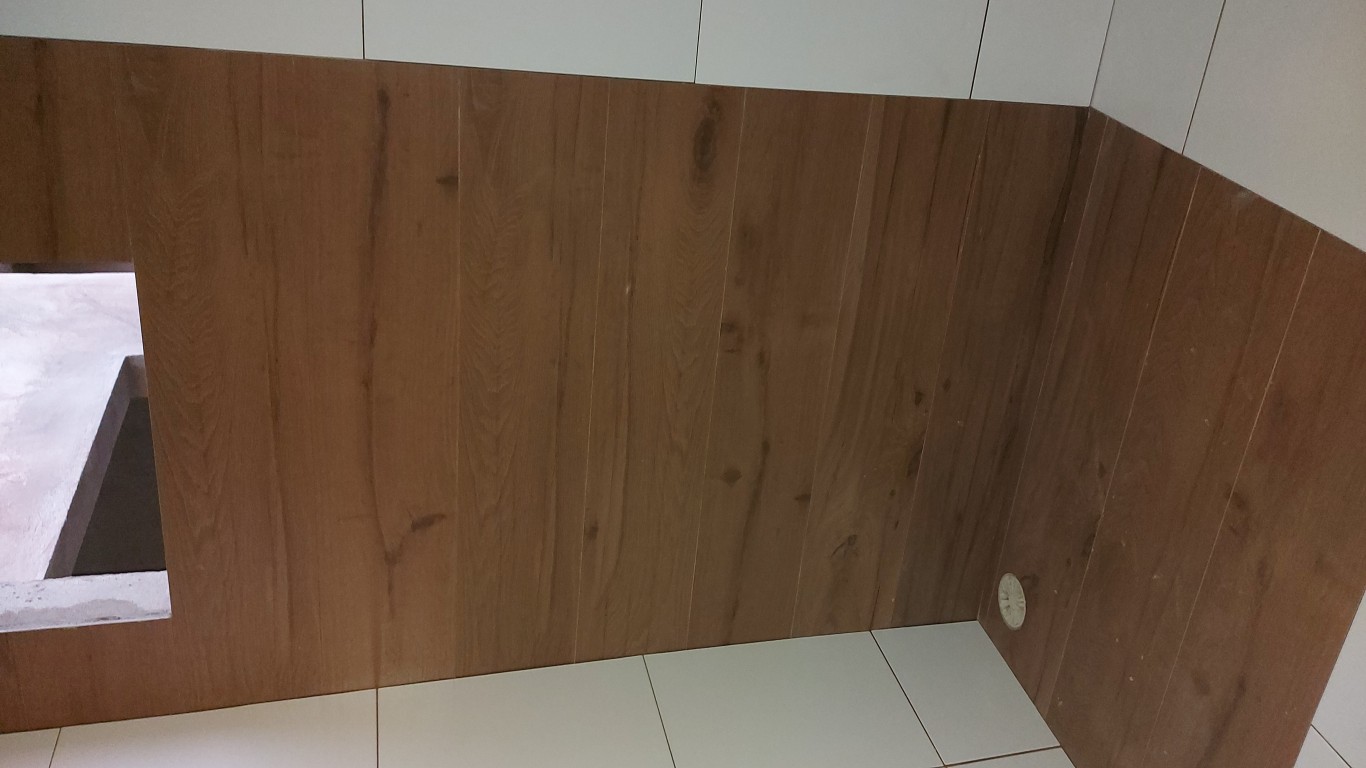 NESTE PROJETO A MAIOR DIFICULDADE FOI COMBINAR PORCELANATO COM PISO COMUM.