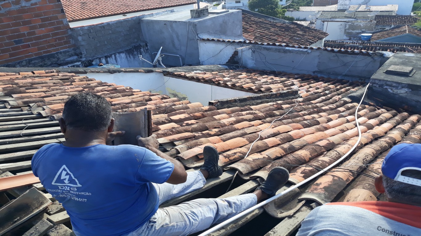 RETIRAMOS TODO O TELHADO ANTIGO DO CLIENTE E SUBSTITUIMOS PÔ UM NOVO.